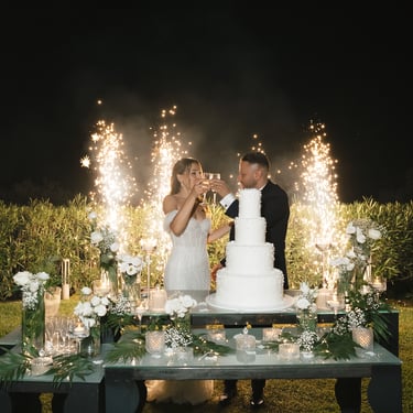 The party, back at the Tecla Gardens, exploded in a whirlwind of music and movement. They danced non-stop, finally free from all tension, surrounded by the affection of those who were there to celebrate with them. The cut of the cake ended the day with a bright and convivial touch, perfect for a civil wedding in Sicily that was able to combine emotion, elegance and spontaneity.