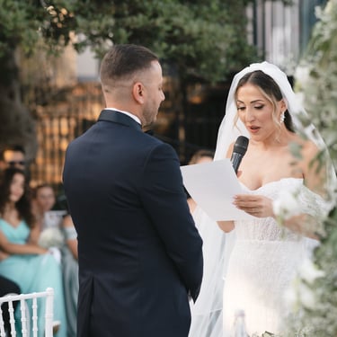 On June 8, in the heart of eastern Sicily, Alessia and Marco celebrated their civil wedding at the Tecla Gardens, immersed in a warm and bright afternoon that smelled of summer. From the preparations, the emotion was palpable: at home they were tense, focused, in that suspension that precedes the important moments.