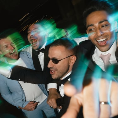 Then the arrival at Tecla's Gardens changed everything. The light filtering through the trees, the smile of the guests, the relaxed atmosphere of the place melted all tension. The civil ceremony, made unique by colorful puffs and a strong emotional charge, transformed their "yes" into an intimate and vibrant moment, full of hugs and emotion.