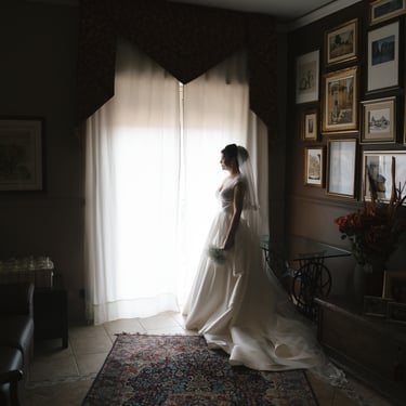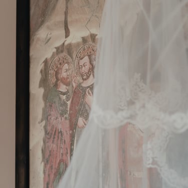 At Francesca's house there was a sweet and calm atmosphere. The walls, adorned with reproductions of famous paintings, seemed to observe the scene with silent complicity. While he was getting ready, the afternoon light came in strongly through the windows and turned on his gestures: small, elegant, true.