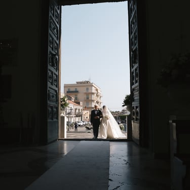 A summer wedding in Viagrande, between the church of Santa Maria dell'Idria and the Giardini di Villa Fago. Francesca and Danilo, light, emotions and authenticity told with a sincere look.