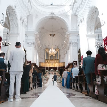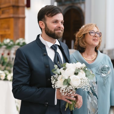 The Church of Santa Maria dell'Idria, white and simple, was the perfect setting for their "yes". When Francesca crossed the threshold, Danilo gave in to emotion. The shiny eyes, the shy smile, the breath suspended. In a moment everything was understood: two people who love each other and who find each other, before God and their dearest affections.